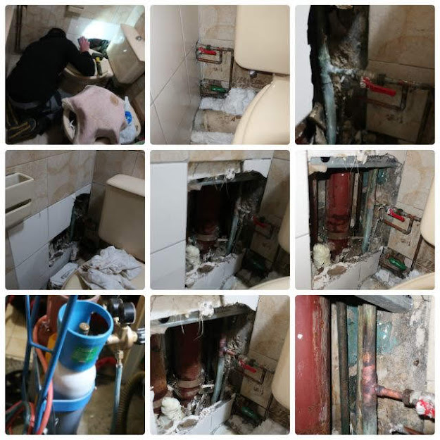 2016年10月16日に配水管に穴が見つかり、壁を壊して工事・・・