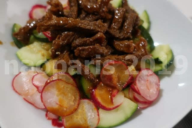 牛肉、クルジェット、ラディッシュ、酢、砂糖、醤油、ごま油はBIO・・・