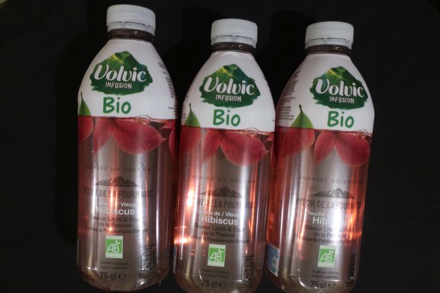 Volvic Infusion bio litchi fuits de la passion touche d'hibiscus 75cl / Eau minérale naturelle Volvic (94,1%), sucre de canne bio (2,2%), jus de citron bio à base de concentré, infusion d'hibiscus bio (0,15%), arômes naturels ... / VOLVIC INFUSION BIO EUR 1,59 / MONOPRIX CLUNY