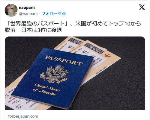 【世界最強パスポート」ランキング2025】The Henley Passport Index2025 Global Ranking US drops out of world’s most powerful passport top 10(2025.10.14)