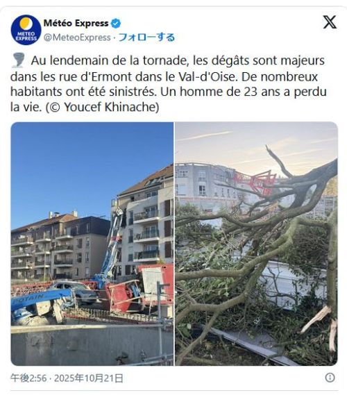 【フランス】【Tornade竜巻】【Ermont】une tornade détruit tout sur son passage2025年10月21日に発生した竜巻