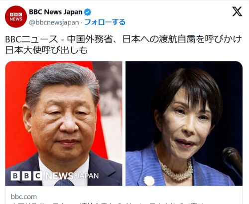 【Chine】中国が日本への渡航自粛を呼びかけLe ministère chinois des Affaires étrangères a appelé ses citoyens à éviter de voyager au Japon